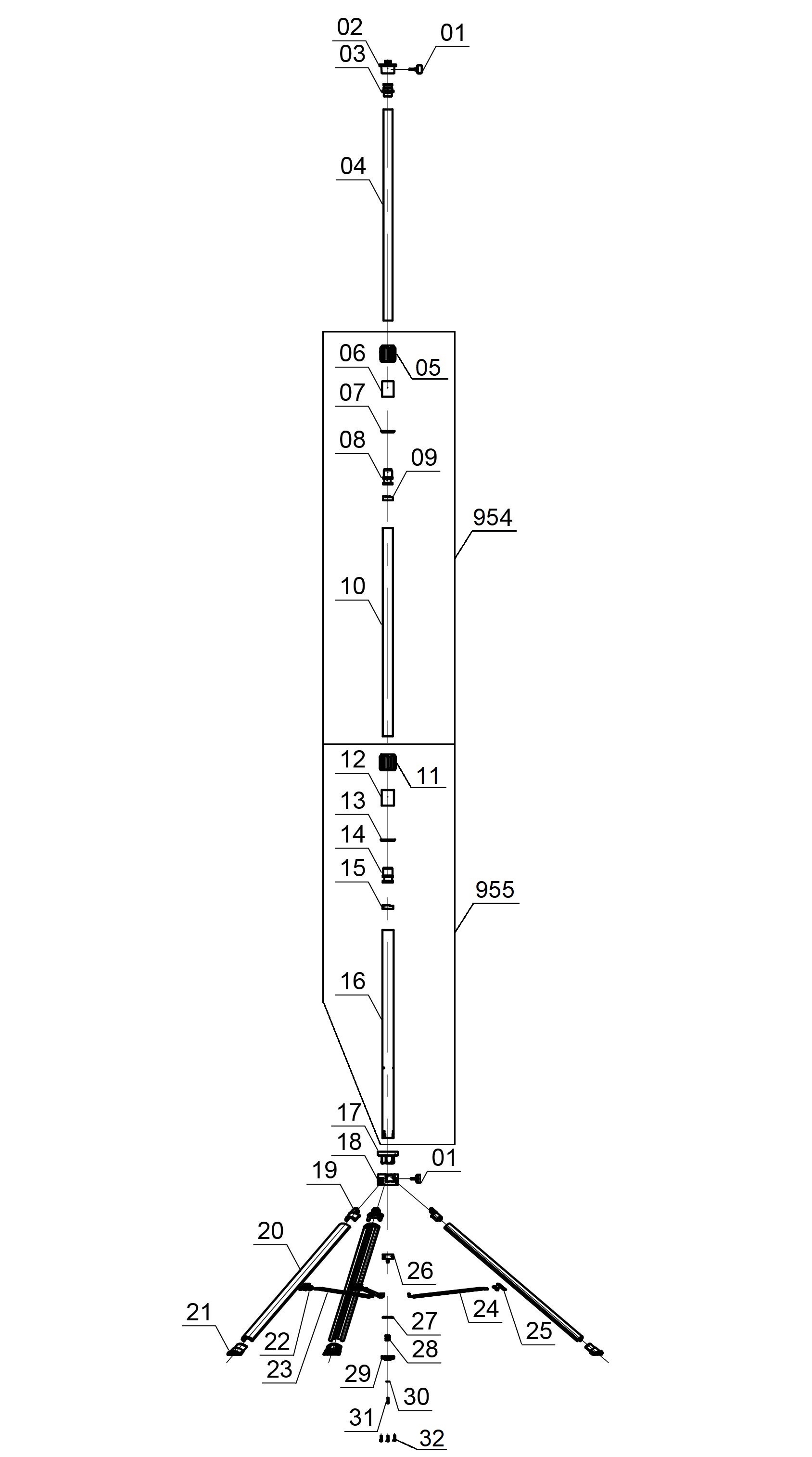 • Teleskopickou tyč stativu lze prodloužit z pracovní výšky 85 cm až do 170 cm.
