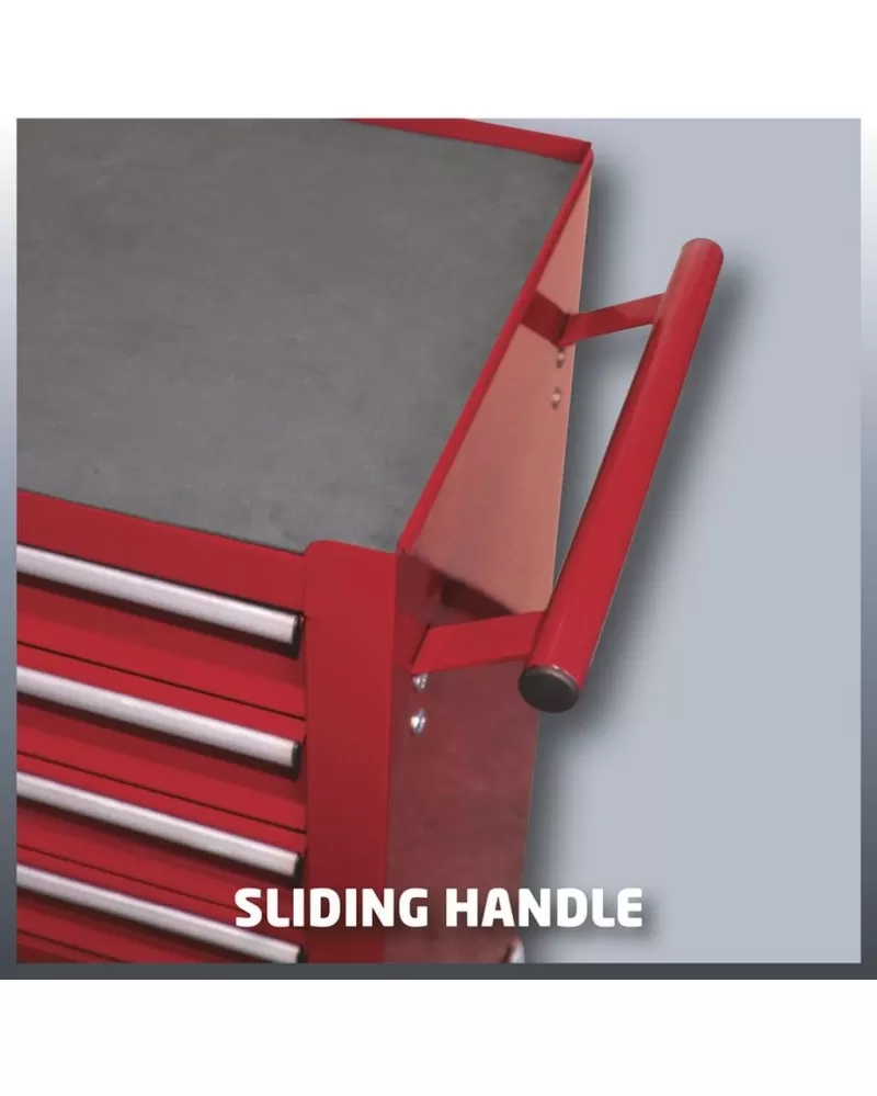 • Díky čtyřem nosným otočným kolečkům z umělé hmoty a rukojeti se stane vozík nástrojem, který lze použít, kde zrovna potřebujete pracovat.