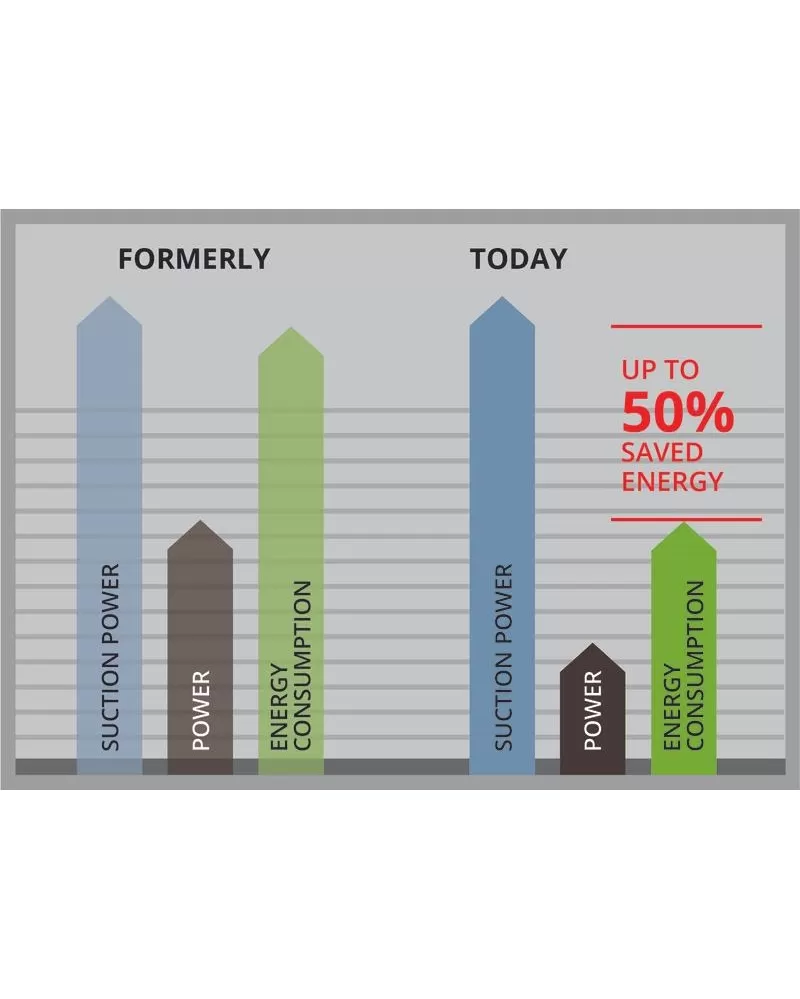• Plynule nastavitelný sací výkon díky regulaci rychlosti