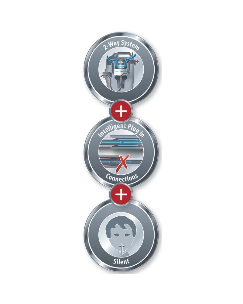 • Součástí dodávky je teleskopická trubice z nerezové oceli (O 36 mm) s regulátorem vzduchu, 3 metry odolná plastová sací hadice (O 36 mm), velká kombinace, štěrbinová hubice a hubice na čalounění a také HEPA skládaný filtr, pěnový filtr a fleecový sáček