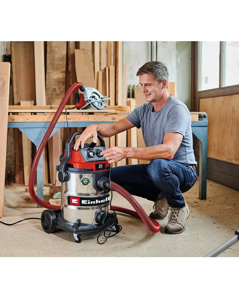 • Ať už prach, kapalina nebo nečistoty – doma i na stavbě: mokro-suchý vysavač Einhell TE-VC 2580 SACL vyčistí vše do hloubky díky sacímu výkonu 200 mbar a příkonu 1 100 W.