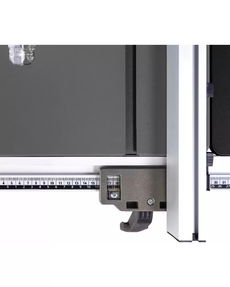 • Robustní paralelní doraz umožňuje provádět podélné řezy a pro snadné úhlové řezy lze použít úhlový doraz nebo naklápěcí pilový kotouč.
