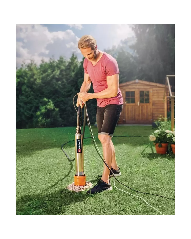 • Až do hloubky 19 metrů lze pomocí lana, jež je součástí dodávky, spustit úzké čerpadlo Einhell, které je možné pevně a bezpečně uchytit pomocí dvou závěsných ok