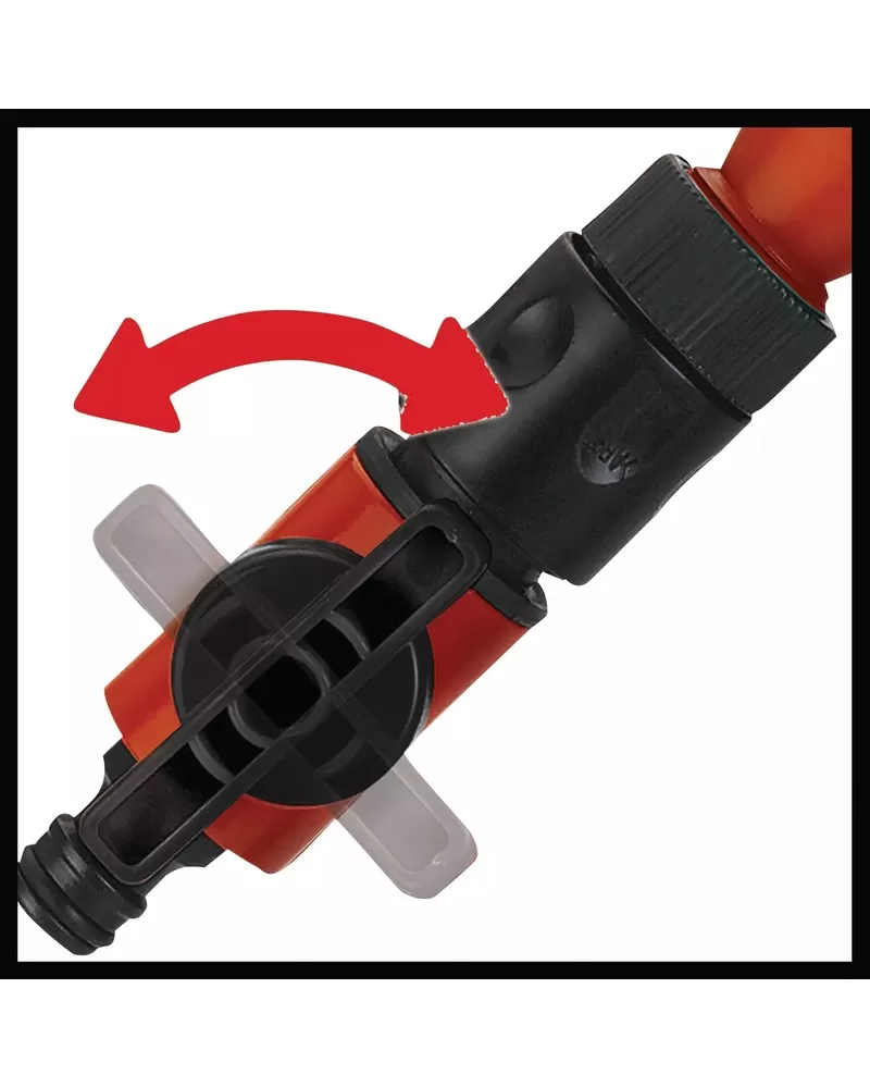 • Čerpadlo má ohebné hrdlo s uzavíracím kohoutem pro individuální umístění zahradní hadice a držák na sud s dešťovou vodou, který umožňuje připevnění čerpadla k sudu