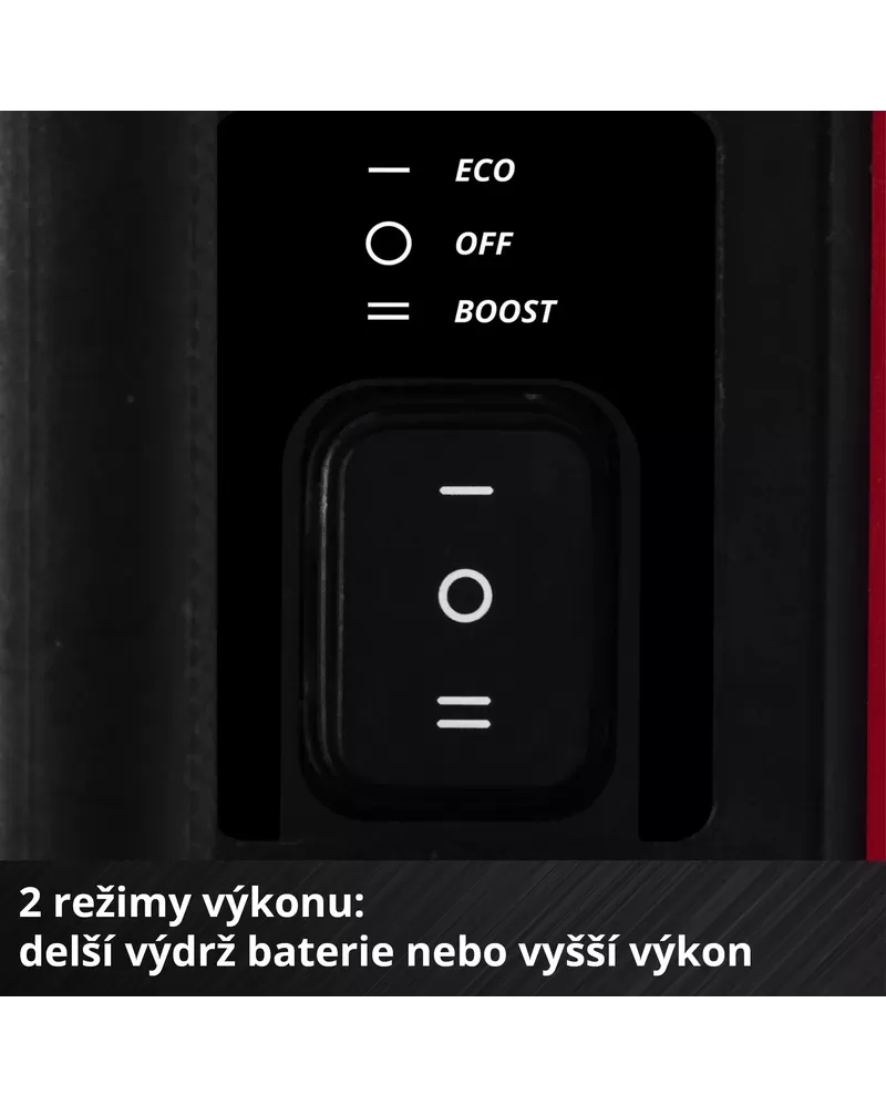 • Zahradní čerpadlo má dva výkonové režimy: režim BOOST pro nejvyšší dostupný výkon a úsporný režim, který pracuje se sníženým tlakem a tím prodlužuje výdrž akumulátoru.