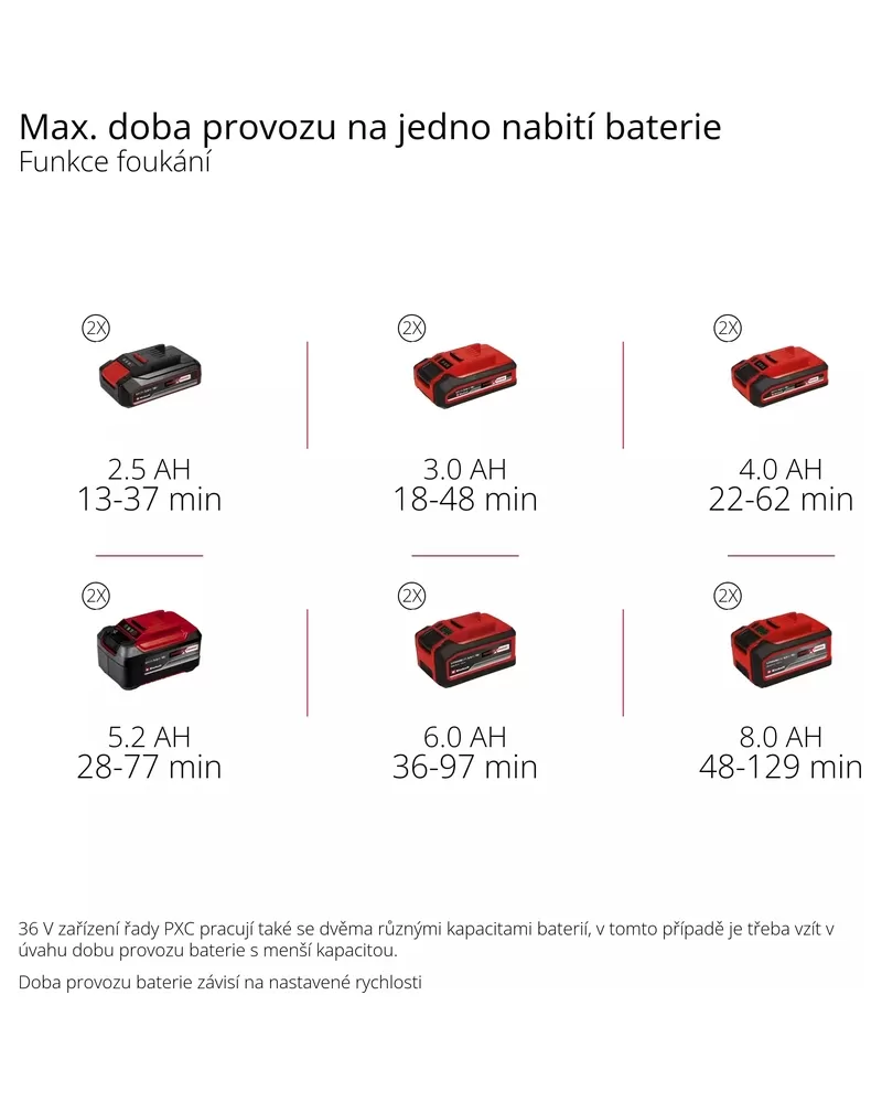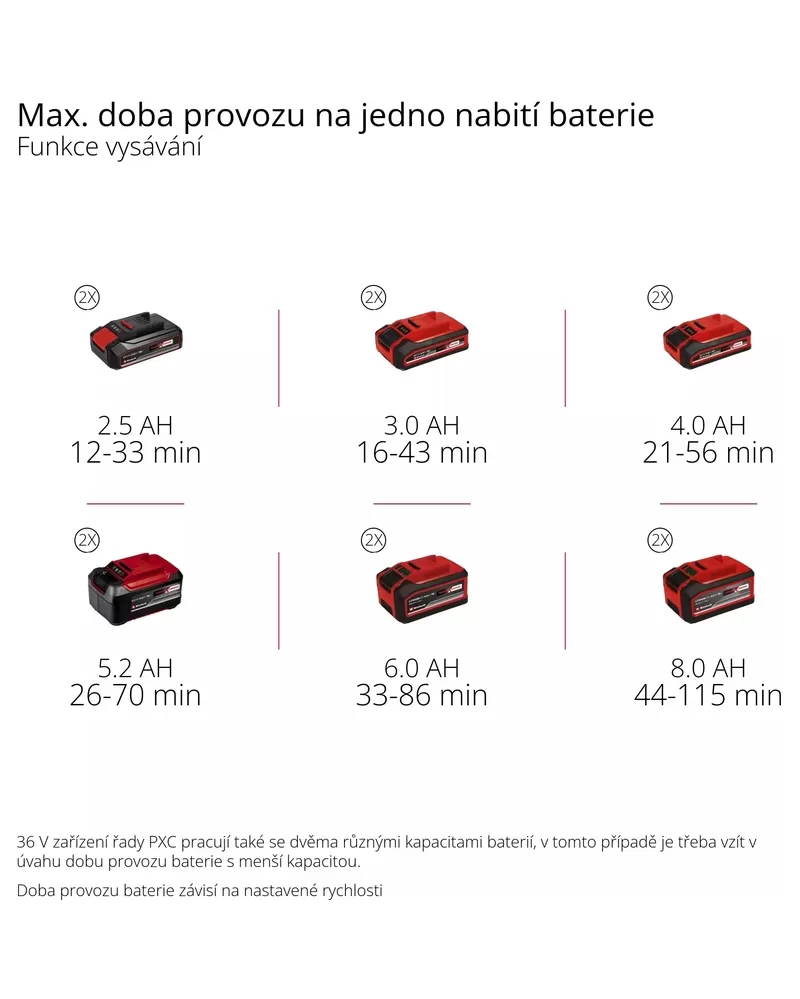 • Pro optimální výsledky doporučujeme baterie s kapacitou 2,5 Ah a vyšší