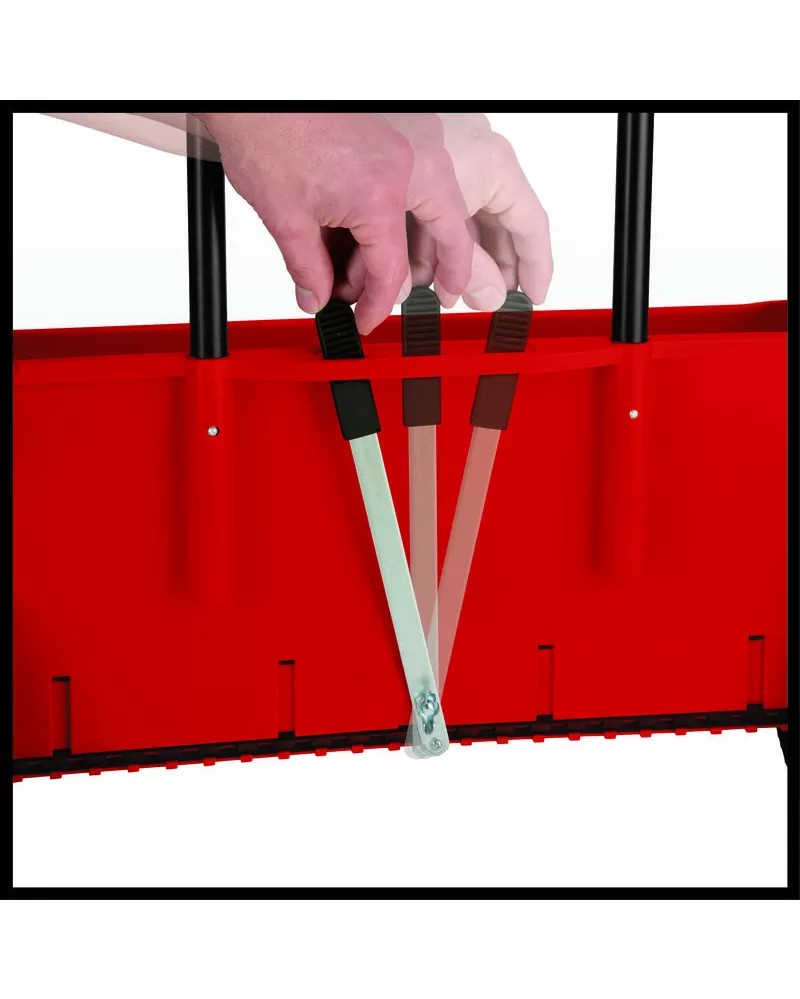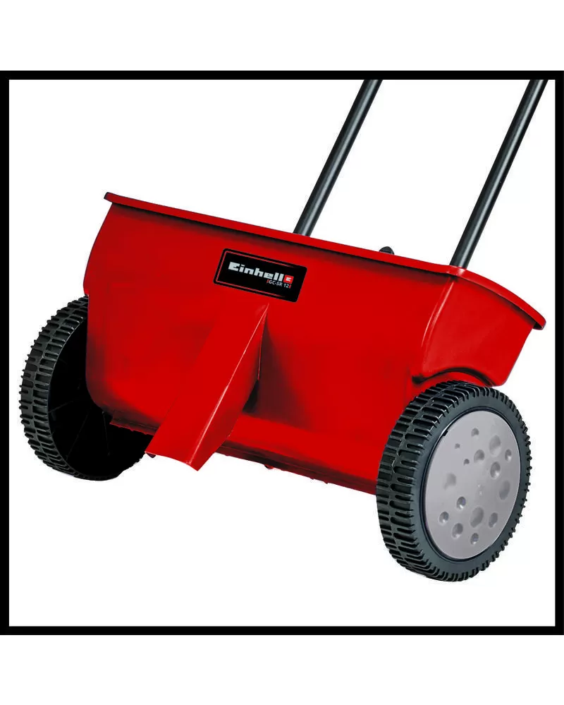 • Dvojité madlo umožňuje jisté a pohodlné vedení vozíku. Oboustranný západkový uzávěr umožňuje úsporu místa při uložení. Tělo vozíku GC-SR 12 je vyrobeno z vysoce kvalitního, nerozbitné plastu a je vybaveno válcem odolným vůči korozi a povětrnostním vlivům. Pomocí páky lze podle potřeby regulovat množství posypu.