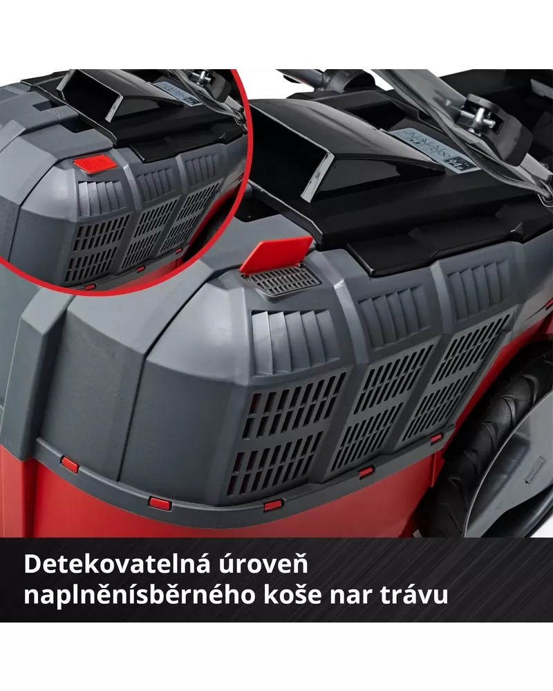 • Zásobník na trávu je vybaven indikátorem stavu hladiny, takže na první pohled vidíte, kdy je třeba zásobník vyprázdnit.