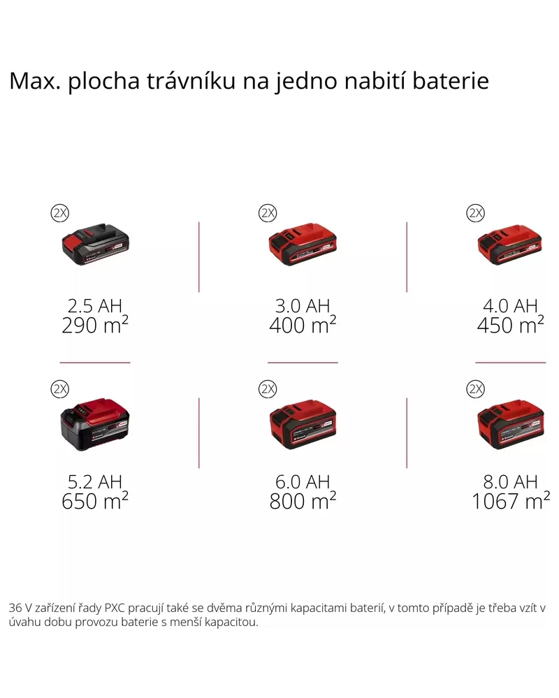 • Aku sekačka se doporučuje pro plochy do 400 metrů čtverečních