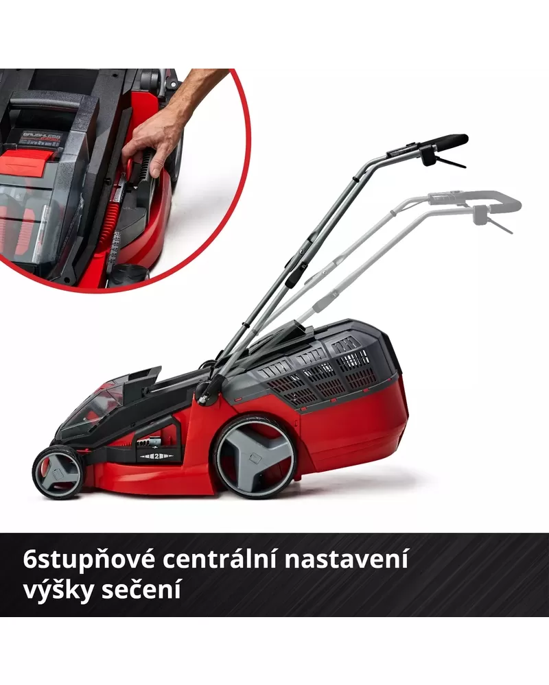 • Šestistupňové centrální nastavení výšky sečení umožňuje jednoduché a individuální nastavení výšky sečení