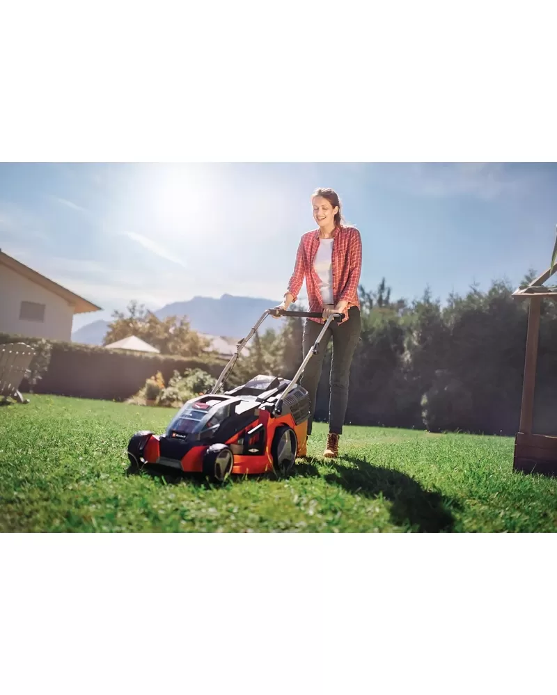 • Díky novému systému baterií Power X-Change od firmy Einhell disponuje sekačka dvěma 18V bateriemi s 4,0 Ah pro dlouhou dobu provozu bez obtěžujícího napájecího kabelu