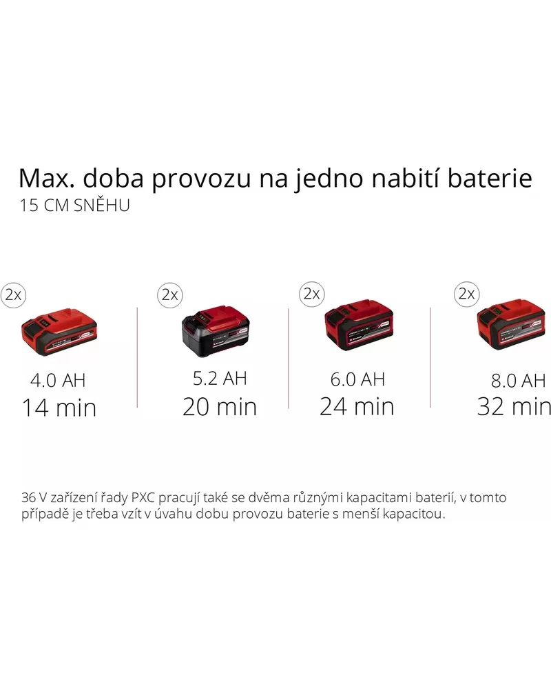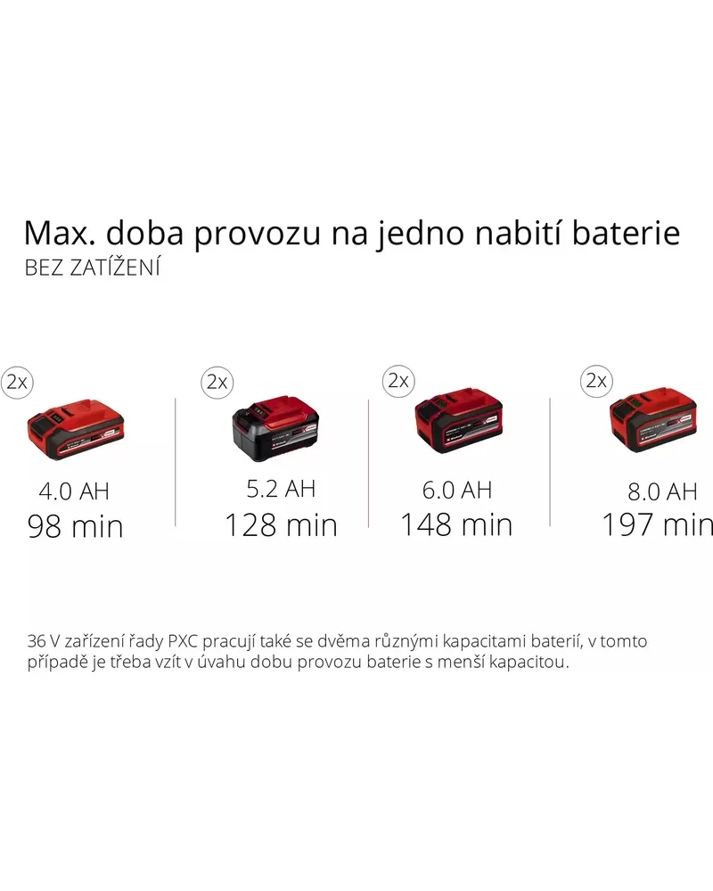 • Pro optimální výsledky doporučujeme baterie 4,0 Ah a vyšší