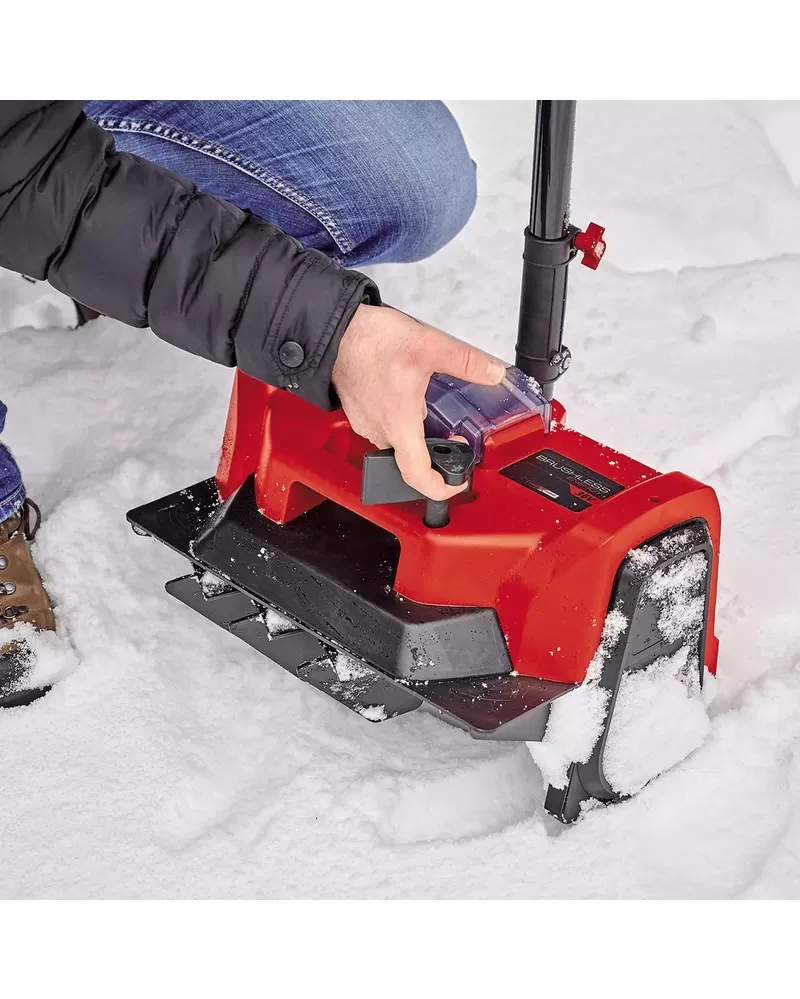 • Akumulátorová sněhová fréza je samostatně stojící, což chrání zařízení.