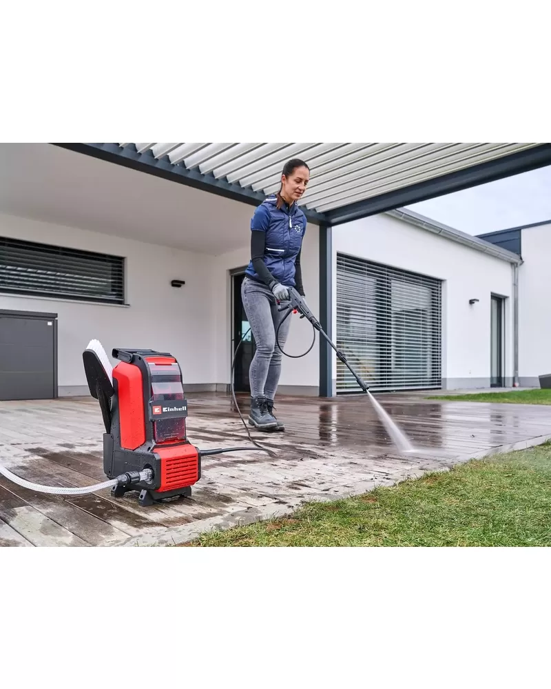 • S maximálním přípustným tlakem 105 barů a průtokem až 270 litrů vody za hodinu bezdrátový vysokotlaký čistič účinně odstraňuje nečistoty z terasového a zahradního nábytku, zahradního nářadí, jízdních kol, odpadkových košů a mnoha dalších předmětů.