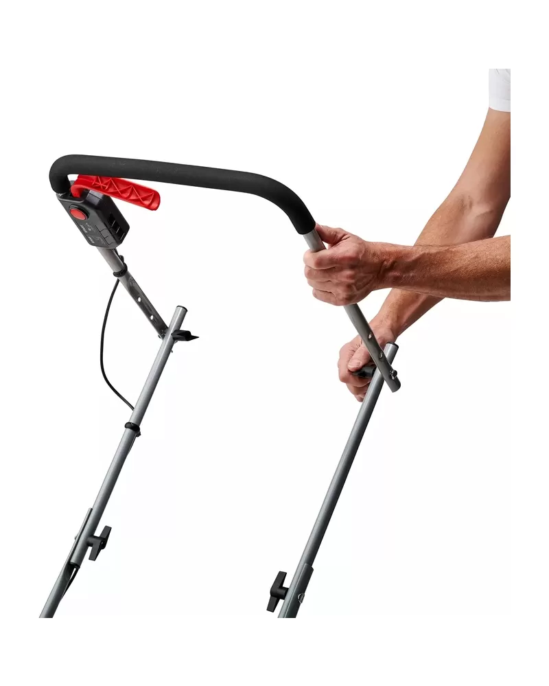 • Pro uživatelskou přívětivost má vertikutátor 3 nastavení pracovní hloubky, polohu pro přenos a složitelnou a polohovatelnou rukojeť